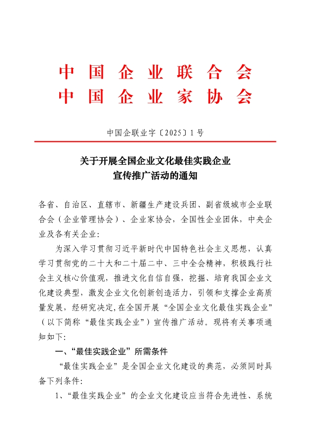 關(guān)于開(kāi)展全國(guó)企業(yè)文化最佳實(shí)踐企業(yè)宣傳推廣活動(dòng)的通知